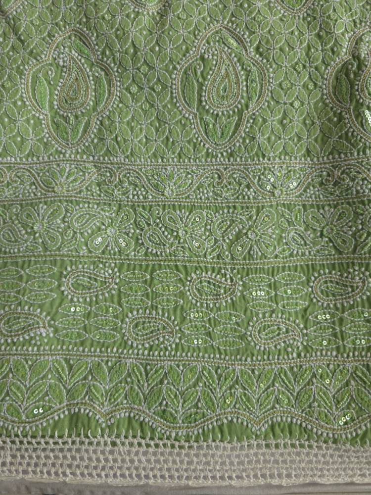 Image of Sage Green designer Cotton Full set with chikankari and add on