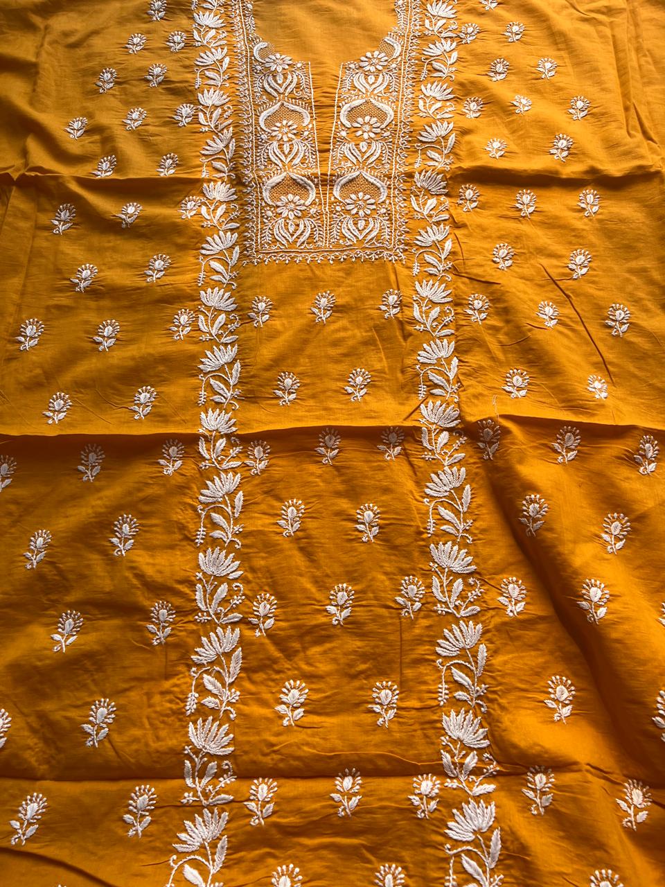 Kurta : with intricate chikankari work on all over front in form of Floral Bails and butis all over, extremely fine and neat handwork, same Butis on all over Back too (3 Mtrs)