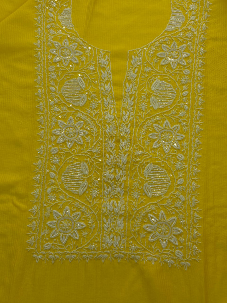Top : Semi stitched with extremely fine Chikankari with Pearl, Cutdana and Sequins work, Beautifully Made Neckline with handwork and embellishments, Buta on Back (Length 41-42")